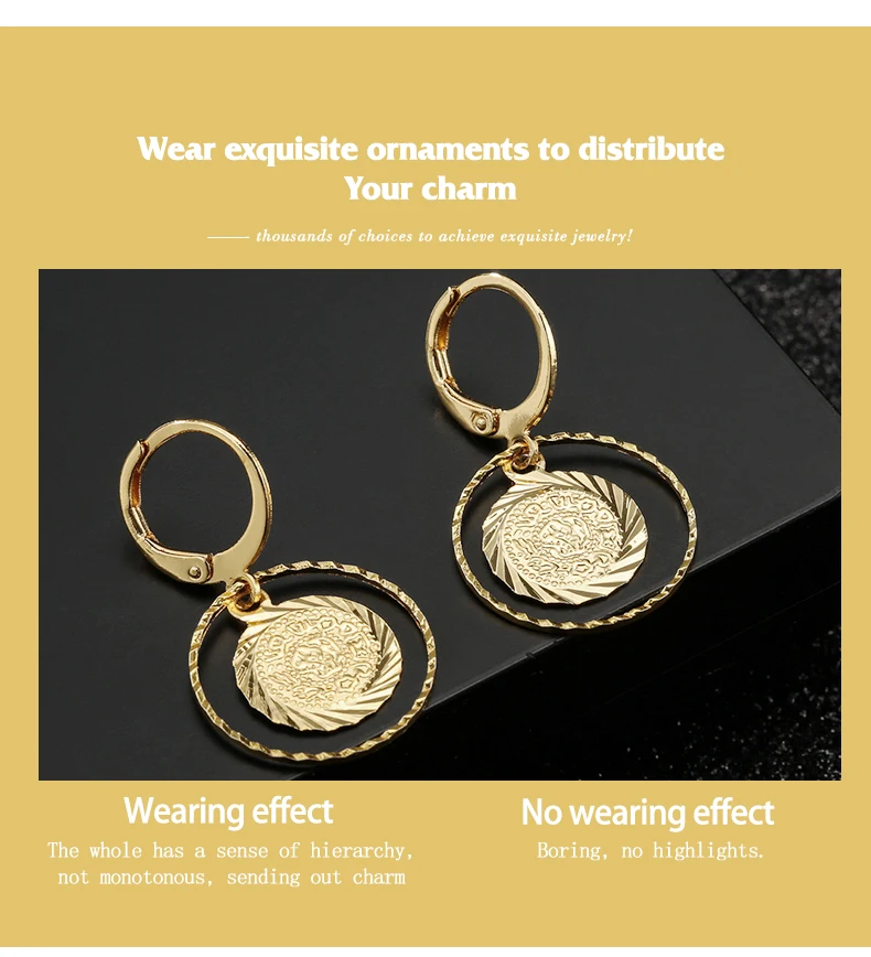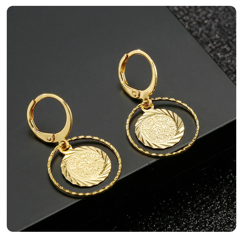 Copper Gold-plated ,Coin Earrings for Women and Girls ,Round feature pendant,Women and Girls Jewelry,Wedding Earrings for Women ,The wedding gift