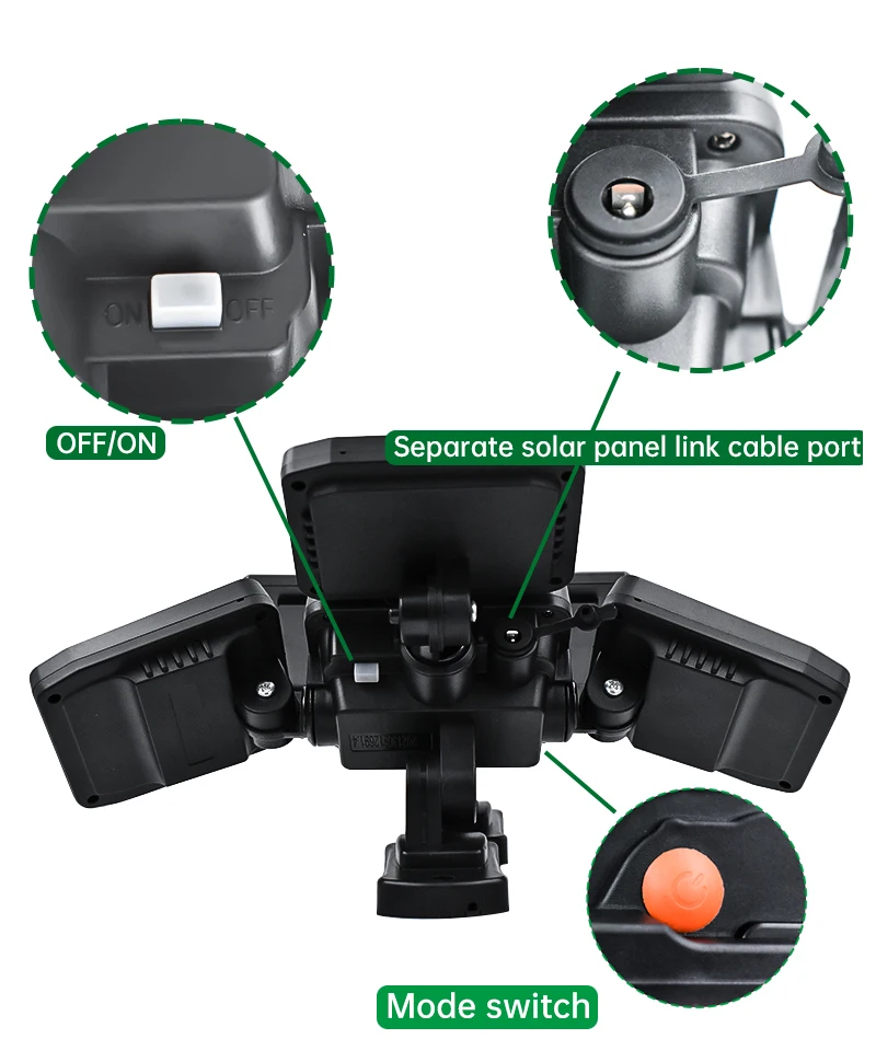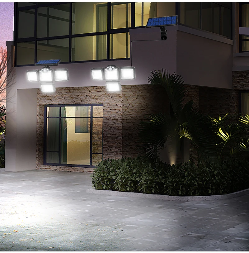 【Регулируемое освещение angle】солнечный наружный датчик движения имеет 4 боковых угла освещения, головку лампы можно поворачивать под любым углом, наши солнечные огни безопасности могут освещать каждый угол вашего двора, особенно положение ниже корпуса лампы. Другой Солнечный наружный светильник с датчиком движения на рынке не может светильник под корпусом лампы.