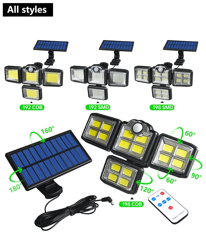 Солнечный светильник движения s 192/198 светодиодный/COB солнечный светильник Открытый Крытый регулируемый угол декоративный светильник ing для гаража сада дома стены