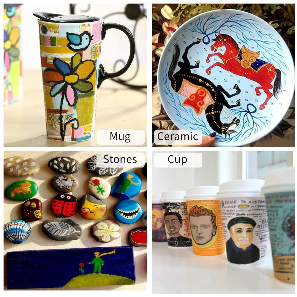 1. Высокое качество-идеально подходит для всех ваших потребностей в разработке. Высококачественные на масляной основе непрозрачные и нетоксичные перманентные чернила позволят смело выражать почти на любой художественной поверхности. Хорошо пишите на бумаге, ткани, металле, камне, мраморе, резине, керамике, дереве, стекле, пластике и многом другом! Водонепроницаемость, быстрое высыхание, мазок и устойчивость к выцветанию.