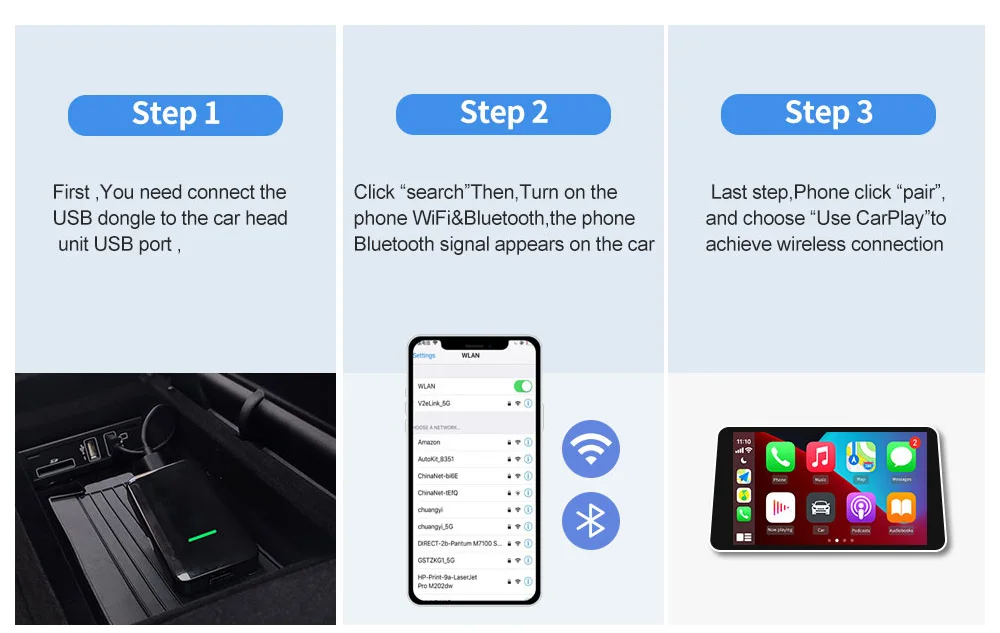 ★Беспроводная CarPlay: сопряжение через Bluetooth и передача через WIFI.