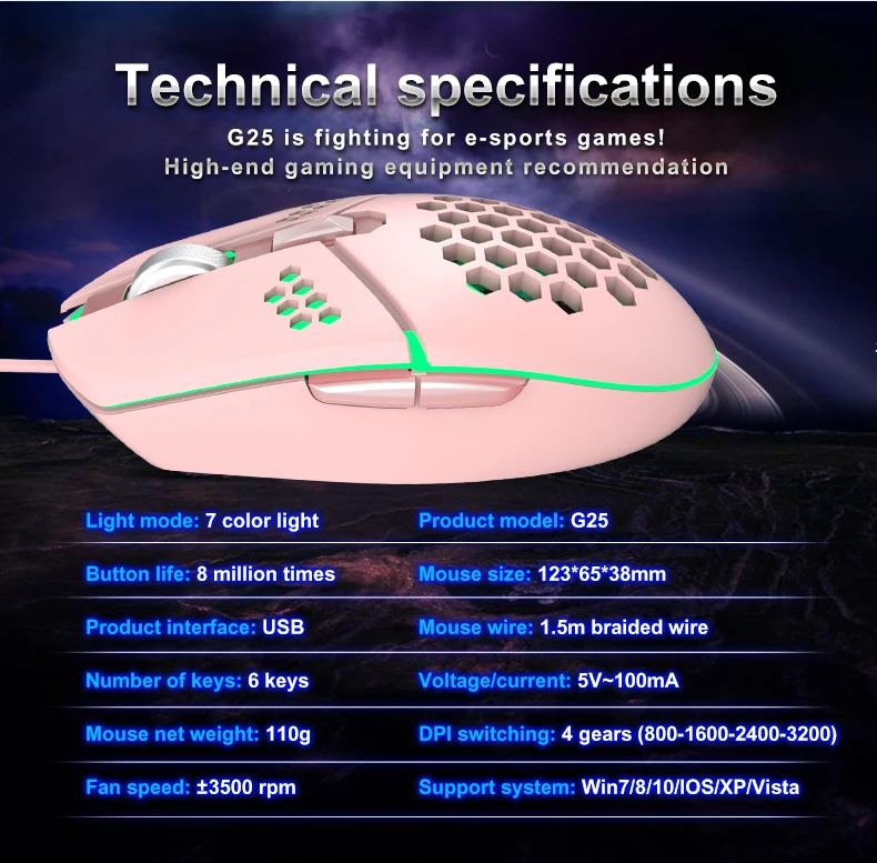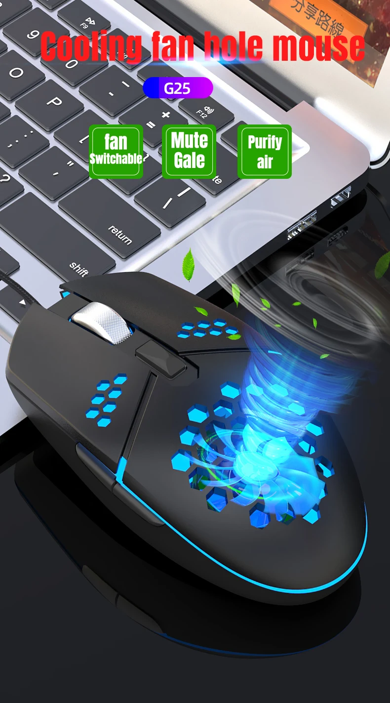 USB Проводная мышь с охлаждающим вентилятором, 6 кнопок, Офисная геймерская мышь, 800-3200 DPI, RGB подсветка, игровая мышь для ПК, ноутбуков, мышей