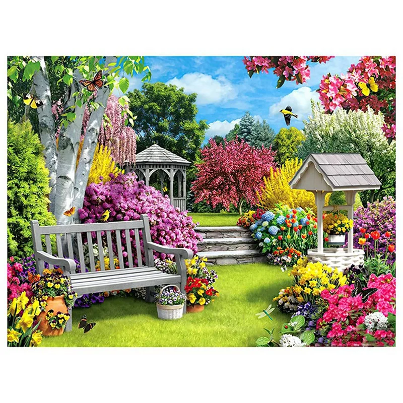 Акция! Полностью круглая Алмазная Картина Пейзаж Сад Алмазная картина цветок Квадратные Стразы Вышивка крестиком для дома