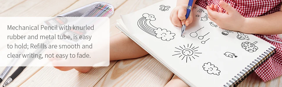 2,0 мм механический карандаш хорошо подходит для ежедневного использования, это может помочь вам закончить ваш замечательный записи и рисунки более эффективно, а также вы можете легко использовать селфи палку, просто нажмите его сверху, чтобы выпустить свинцовое пополнение.