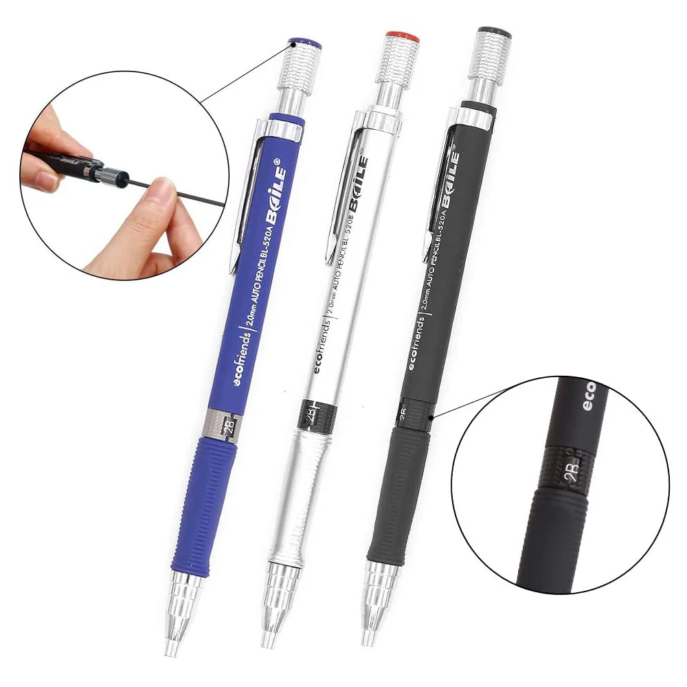 2,0 мм 2B механический автоматический карандаш цвета и черные свинцовые заправки для черновика, плотника, письма, крафта, художественного эскиза