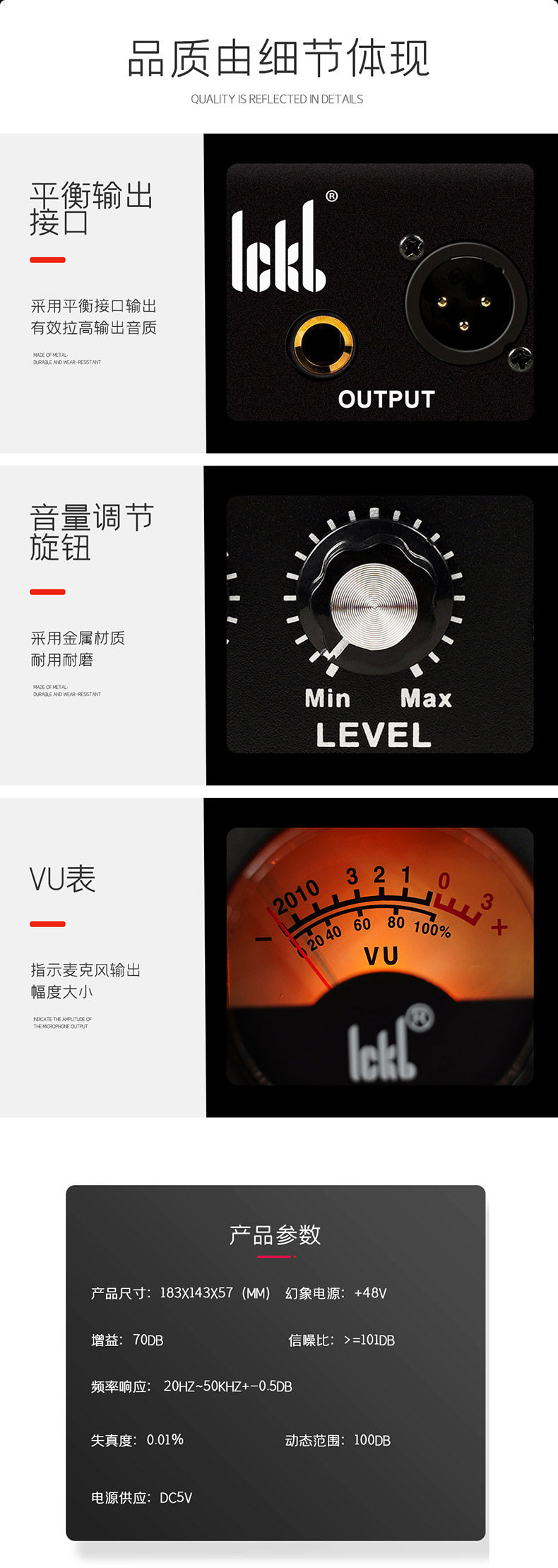 Стабильный. Надежный: низкое выходное сопротивление и фоновый шум, эффективное подавление радиочастотных помех, цельнометаллический внешний вид, прочный и долговечный, способен на высокие стандарты, требования к передаче сигнала на большие расстояния.