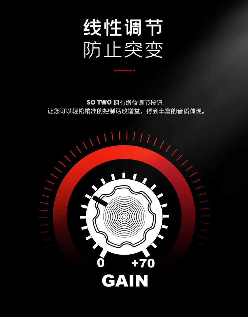 Регулировка усиления: таким образом, две кнопки регулировки усиления позволяют легко и точно управлять усилителем микрофона. Усиление + 70.