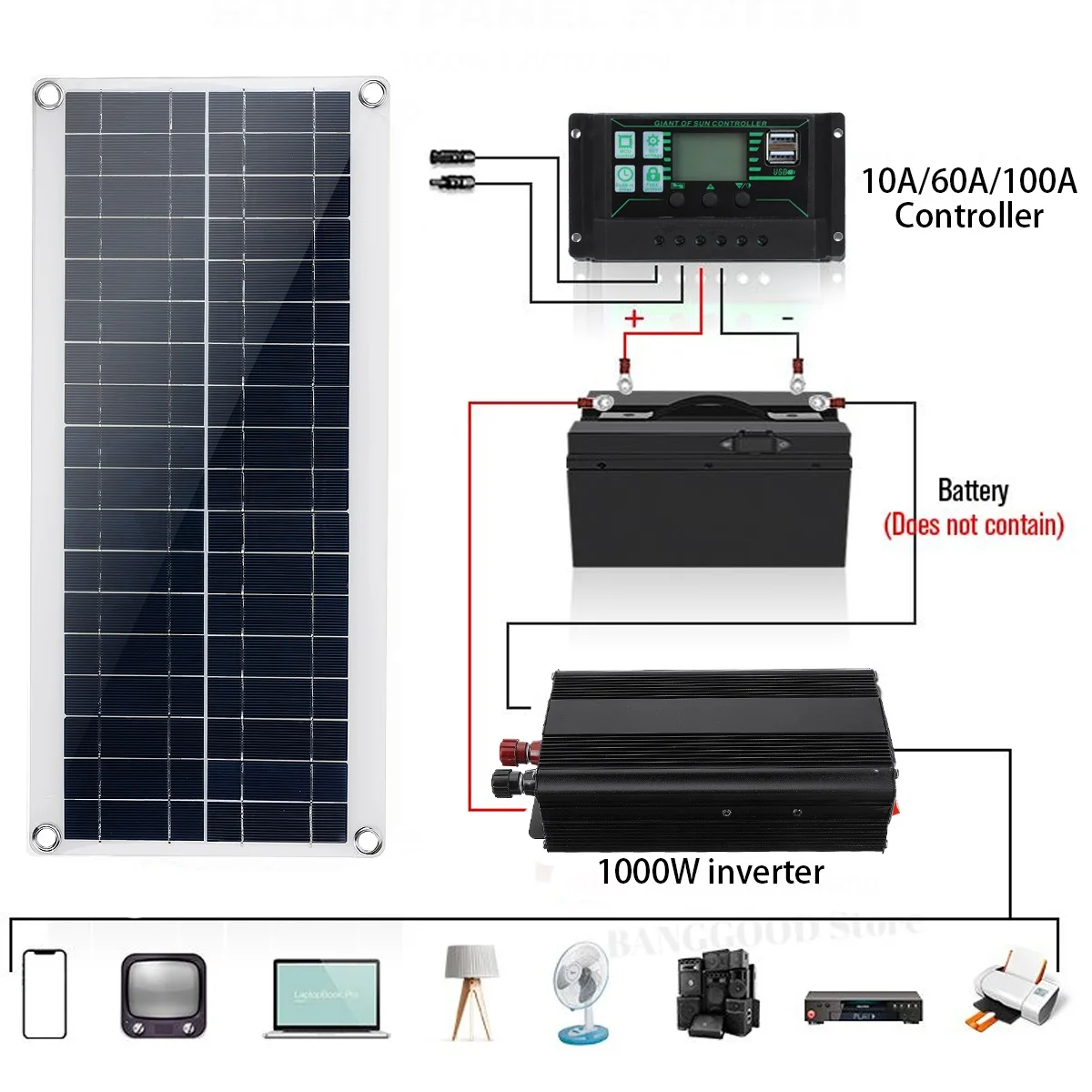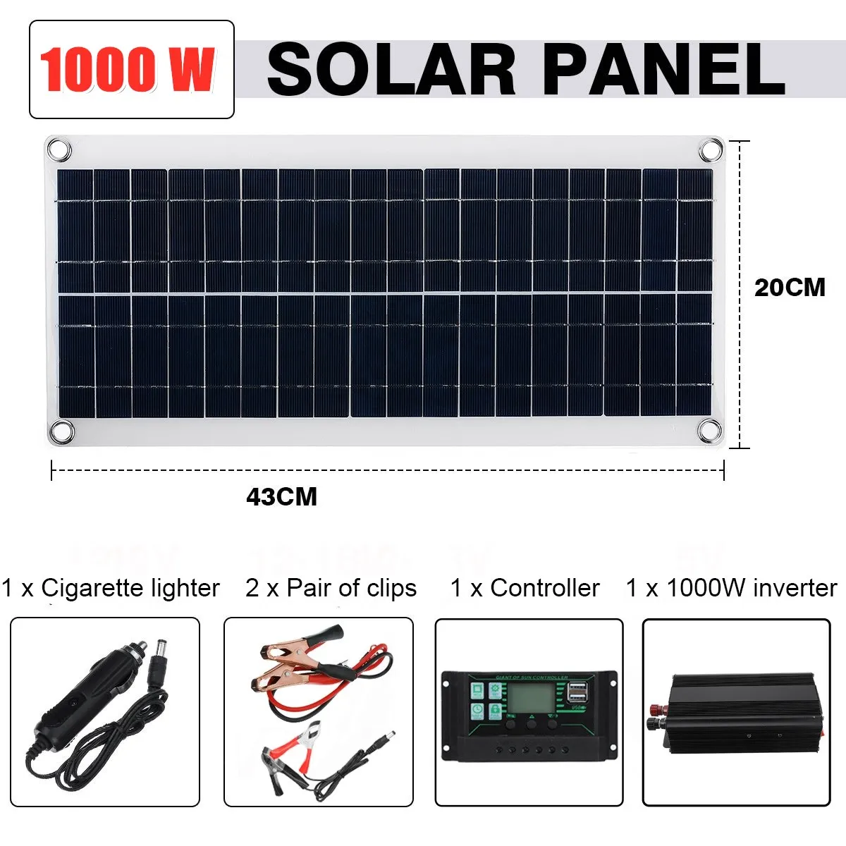 Name: 1000W Solar Panel Car Van Boat Camper Battery Charger+1000W Inverter