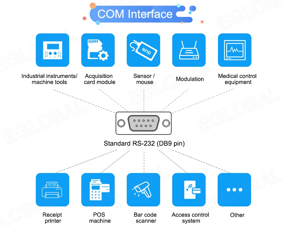 6 x COM RS232(3 линии) портов, COM1 COM2 может изменить на RS485/422 от BIOS