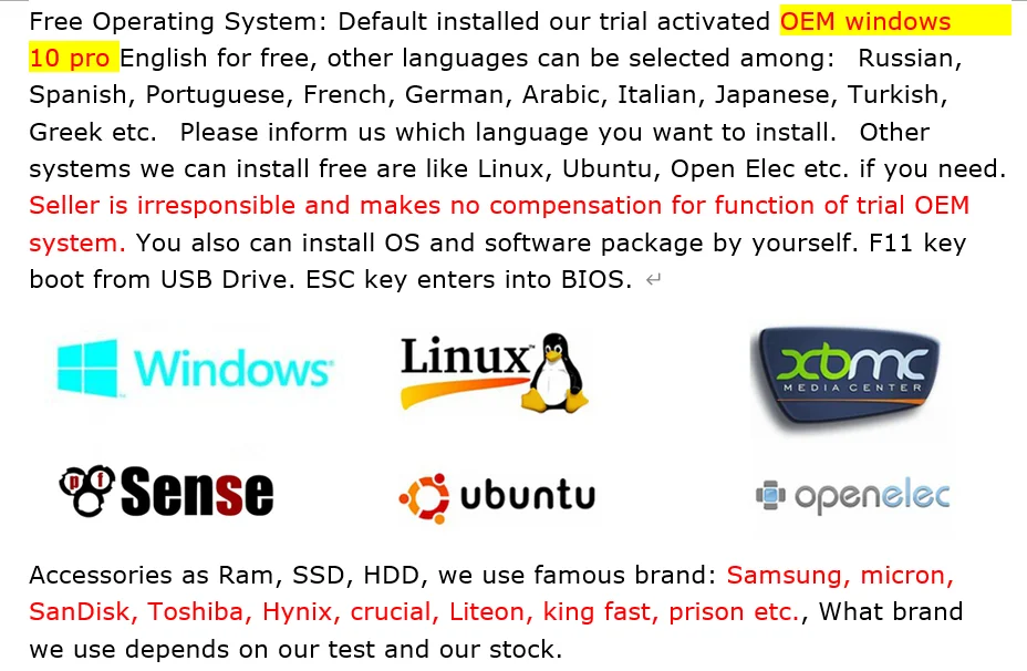 4. Не покупайте Комплект «без ram no storage», если вы не являетесь специалистом по компьютеру, ПК лучше всего использовать Samsung, SK Hynix, Micron и т. д. оригинальные брендовые аксессуары, мы не компенсируем собственную ОЗУ и жесткий диск покупателя.