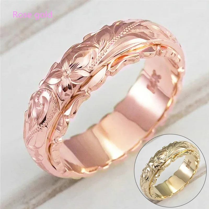 14k желтое золото 2021 чистое желание хвост женское кольцо новое покрытое подвесным резным розовым цветком кольцо