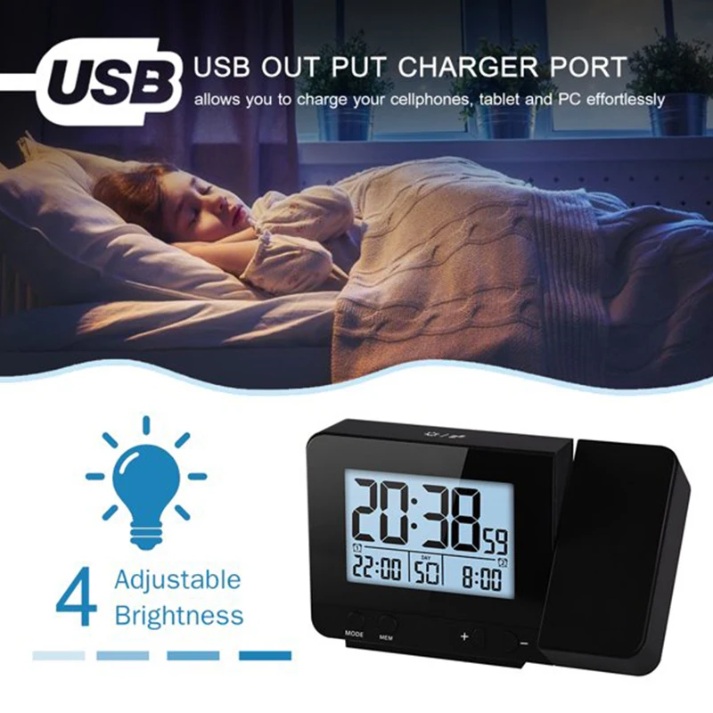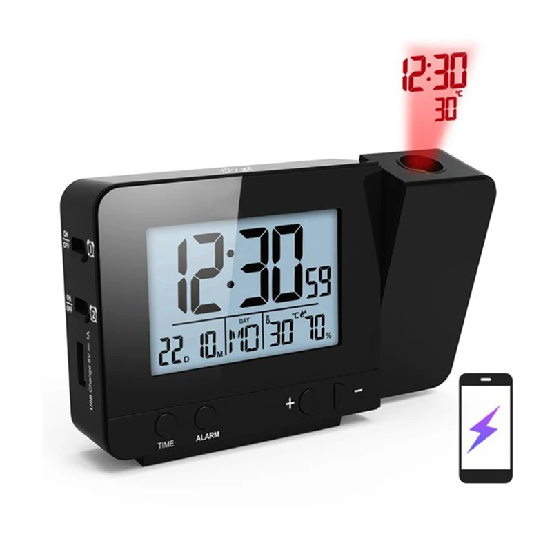 USB и память отключения питания-Термометр с проекционным будильником имеет интерфейс USB на выходе, который позволяет вашим мобильным телефонам,