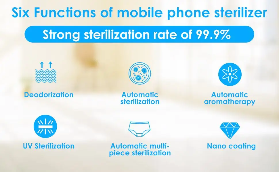 Размер 218x182x53 мм, подходит для Мобильные телефоны под 6,5 дюйма, очень подходит для небольших аксессуаров, в дополнение к мобильные телефоны, также можно стерилизовать ювелирные изделия, карт, кисти для макияжа, очки, инструменты для красоты, bluetooth-наушники и предметы первой необходимости.