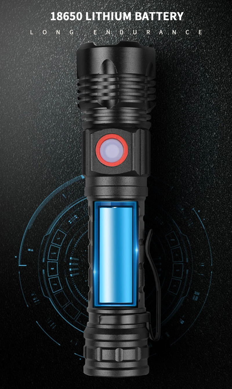 Посылка включает в себя: фонарик + USB кабель
