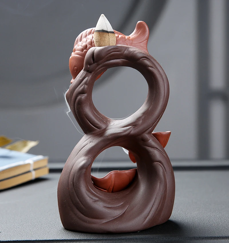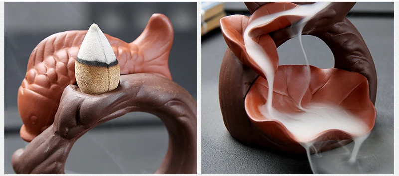 1. Creative Design: creative ceramic reverse-flow incense burner, left and right blade interleaving design, not only breaking a single feeling but also making smoke, connecting left and right, increasing the sense of hierarchy.
