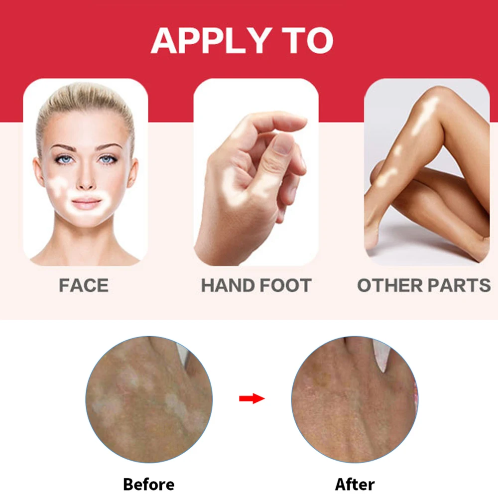 Пера лучше всего работает с даже светильник ударов, применения мягко на бесцветные, не пытайтесь сильному давлению непосредственно на совет. Пожалуйста, не намазывайте слишком много на краю точки витилиго и нормальной кожи, в противном случае она не будет близка к нормальному цвету кожи.