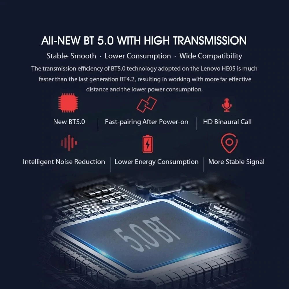 Оригинальный телефон Lenovo HE05 Bluetooth совместимым 5,0 Шейным Беспроводные стерео наушники спортивные магнитные спортивные наушники для бега IPX5 из водонепроницаемого материала