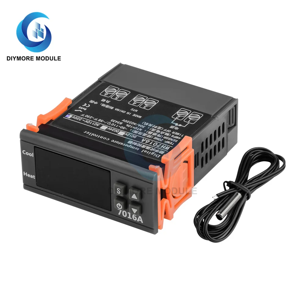 7016A-Универсальный однофазный контроллер температуры, релейный выход 30A, высокая мощность, может управлять нагревом/охлаждением, управляемая температура может быть установлена произвольно между-50 ~ 110 ℃, -58 ~ 230 'и температурную разницу между запуска и остановки может быть в произвольном порядке комплект 0,1 градусов разрешение дисплея от 1 до 25 градусов, 1 Степень Разрешение управления, Функция задержки запуска, 0-30 минут регулировки, регулировка температуры верхней и нижней лимит диапазона, с функцией хранения данных.