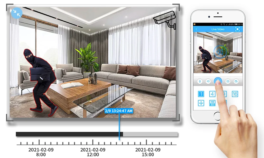 Простая настройка, всего 4 шага для просмотра мобильный телефон, просмотра видео в режиме реального времени из любого места и в любое время с помощью смартфона, стола или ПК с передовой технологией P2P, вы можете получить удаленный доступ к вашей системе за считанные минуты или меньше, нет необходимости в переадресации, удаленный доступ никогда не был таким простым!