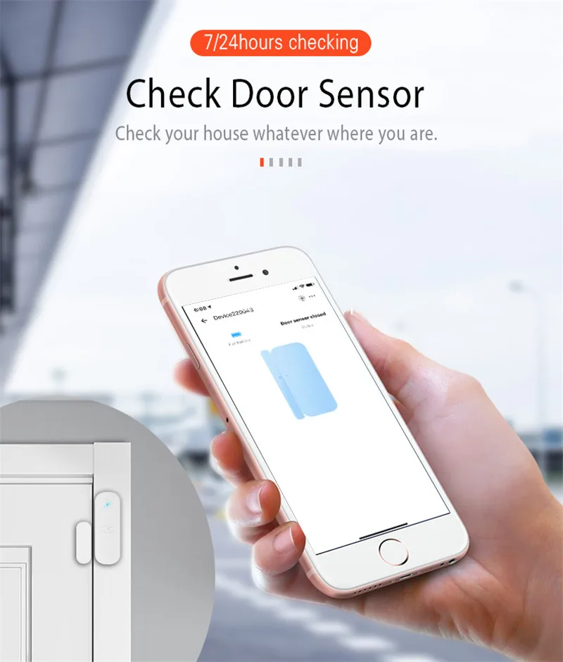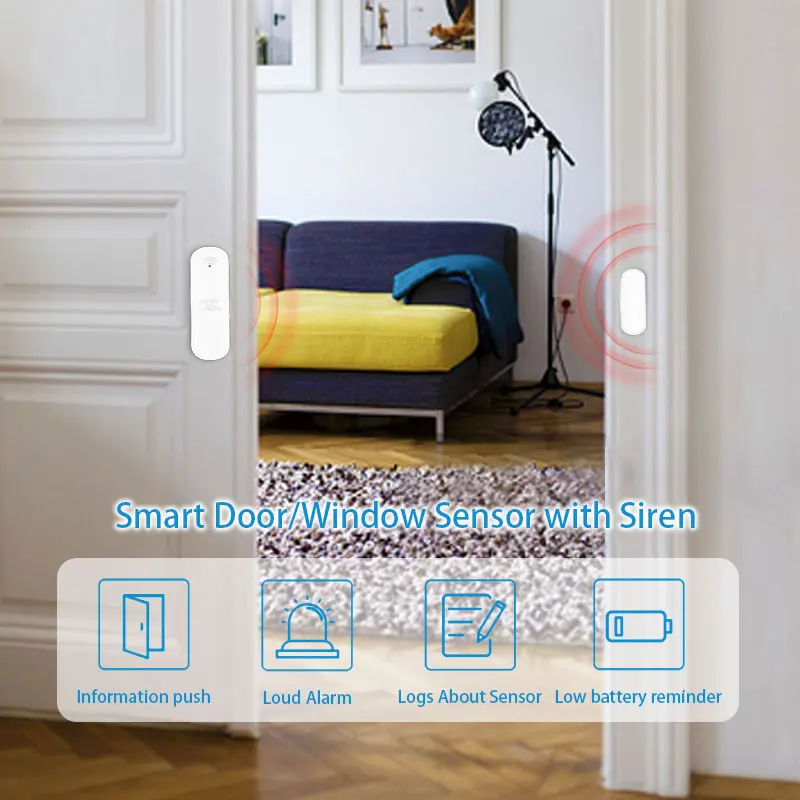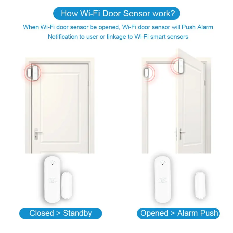 Когда датчик двери Wi-fi будет openedWi-fi, датчик двери подтолкнет оповещение пользователя или привязать к Wi-fi Смарт-датчикам