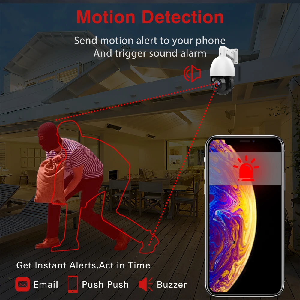 Можно настроить область, которую вы хотите контролировать, когда она срабатывает, она отправит сообщение на вашу электронную почту, вы можете получить информацию из первых рук, независимо от того, когда и где вы находитесь.