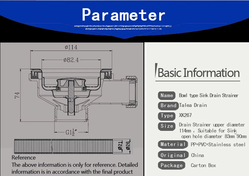 Размер: верхний диаметр-114 мм, подходит для раковины, диаметр отверстия-isφ 83 - 90 мм