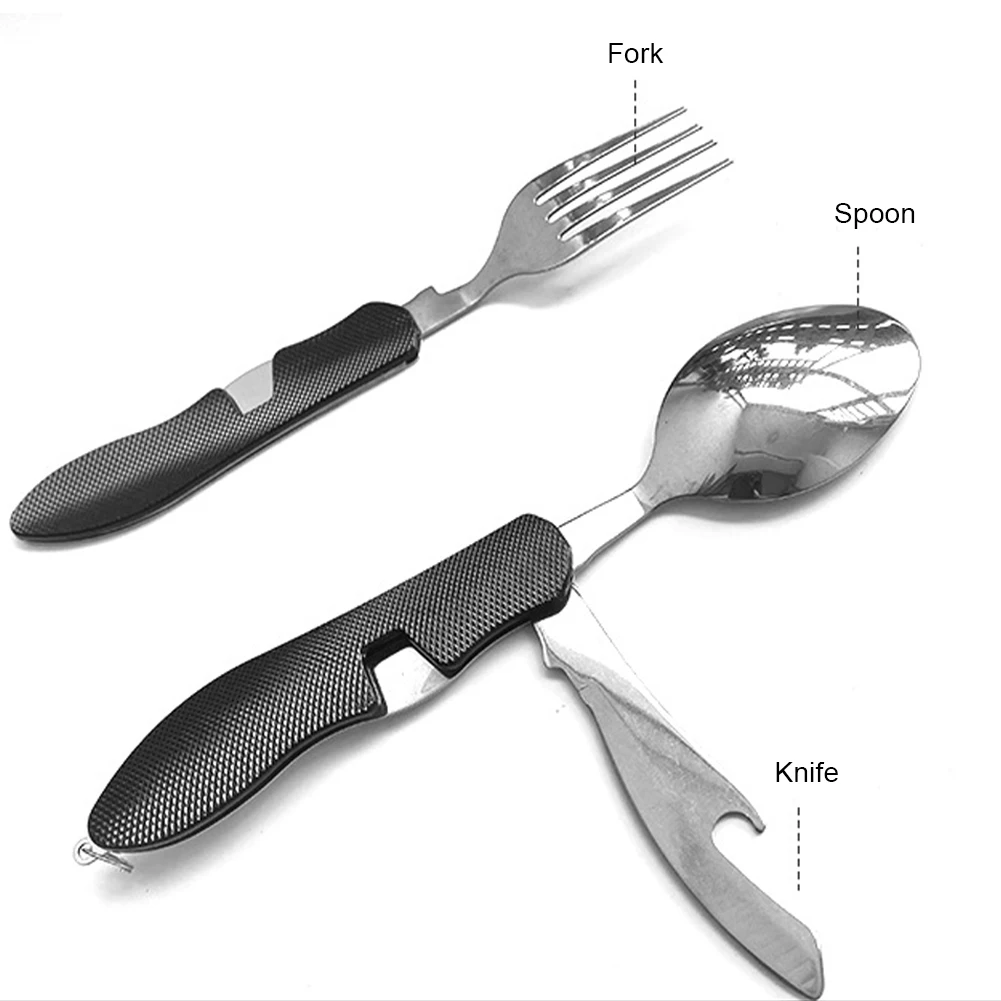 * 2. Эта походная посуда представляет собой набор ложек, вилок и ножей. И вилка может быть отделена для раздельного использования.