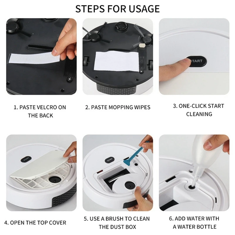 Интеллектуальный пылесос: робот-пылесос, очень подходит для пыли, волос домашних животных, твердых полов, мусора и ковров. Тихие на работе, не мешать нам спать и смотреть телевизор. Кроме того, робот-пылесос может достичь комбинации пылесоса и подметания.