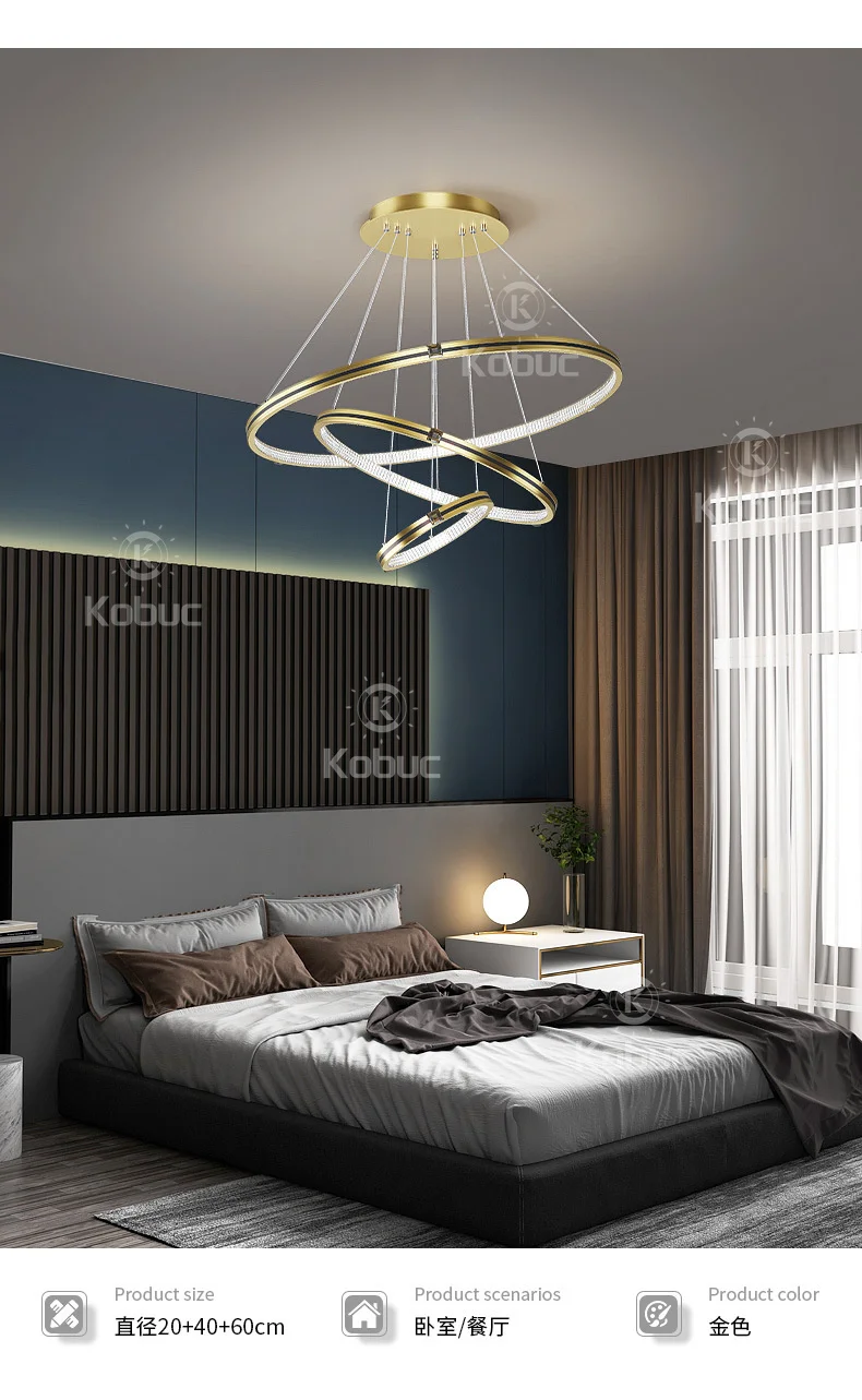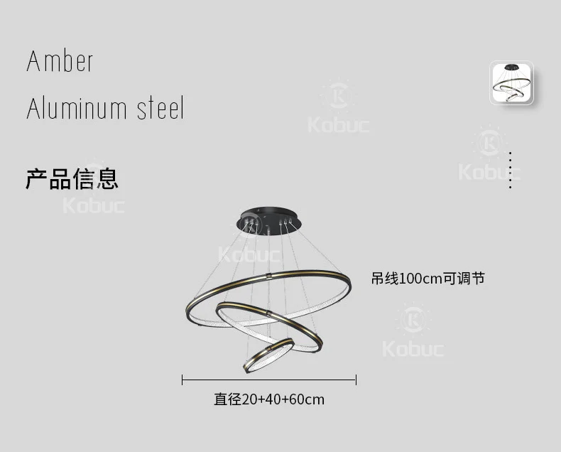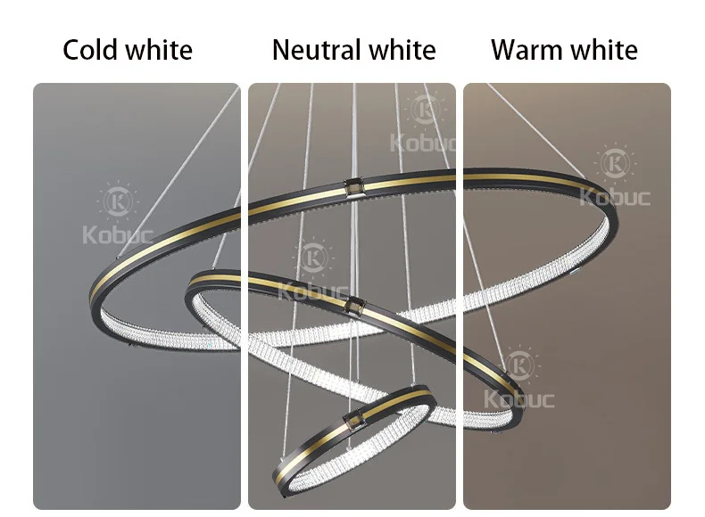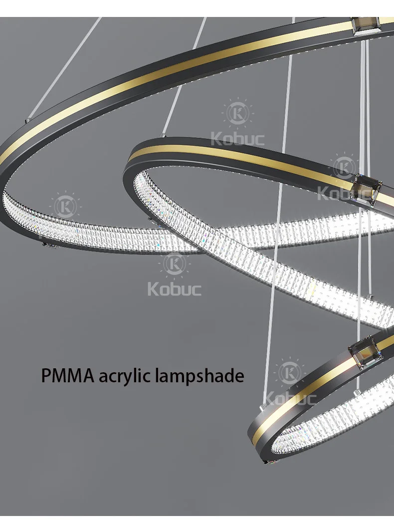 Kobuc современная светодиодная потолочная люстра, черная лампа для виллы, гостиной, спальни, столовой, 3 кольца, люстра для дома, внутреннее освещение, Декор