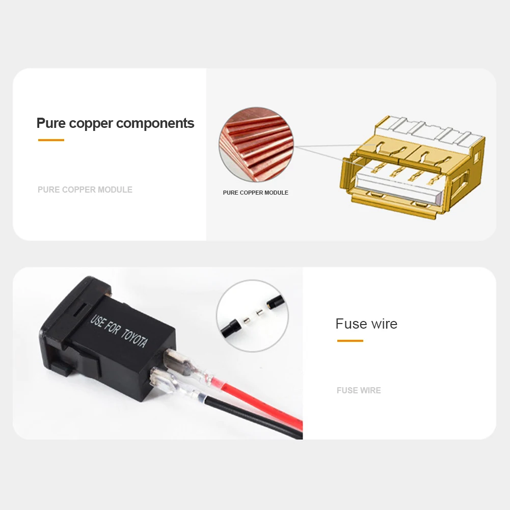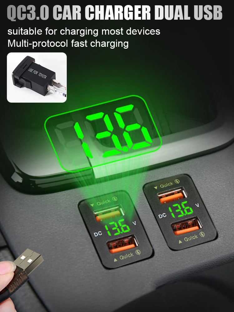 * 1. Быстрая зарядка автомобильного зарядного устройства с максимальным общим выходом 36 Вт, двумя usb-портами.