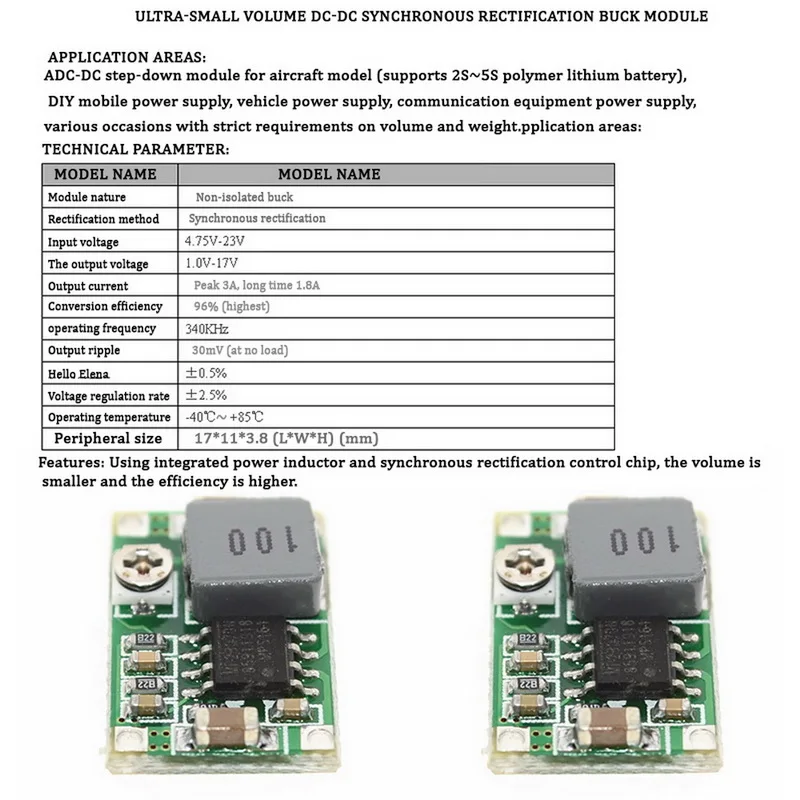 <Эффективность: до 96% (зависит от разницы между входным и выходным напряжением) Этот модуль использует синхронное выпрямление, эффективное преобразование мощности доступно.