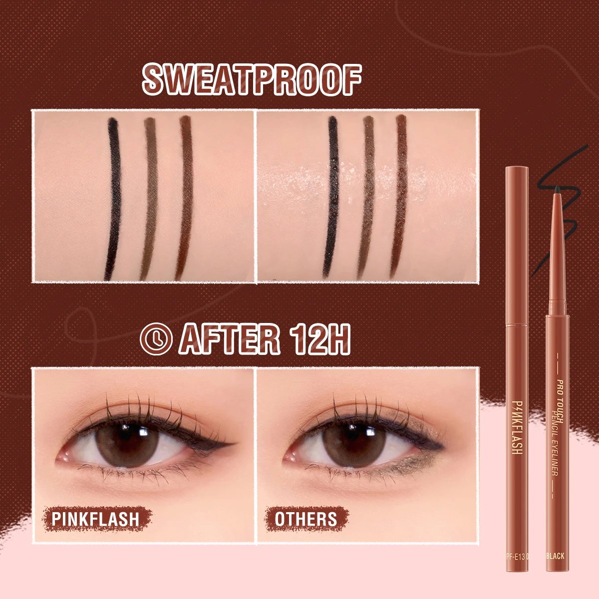 [Длительное ношение] Эта непромокаемая, долговечная и водонепроницаемая подводка для глаз легко скользит, которая длится до 12 часов, не размазывая