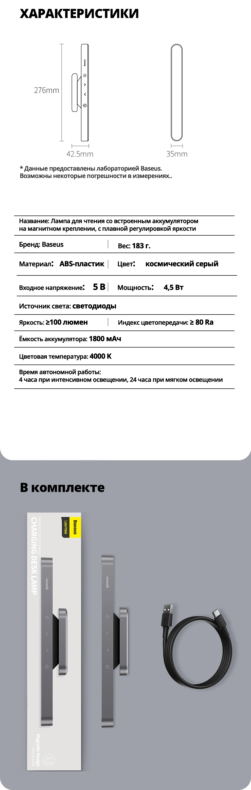 Магнитная бесступенчатая Настольная лампа с затемнением для зарядки