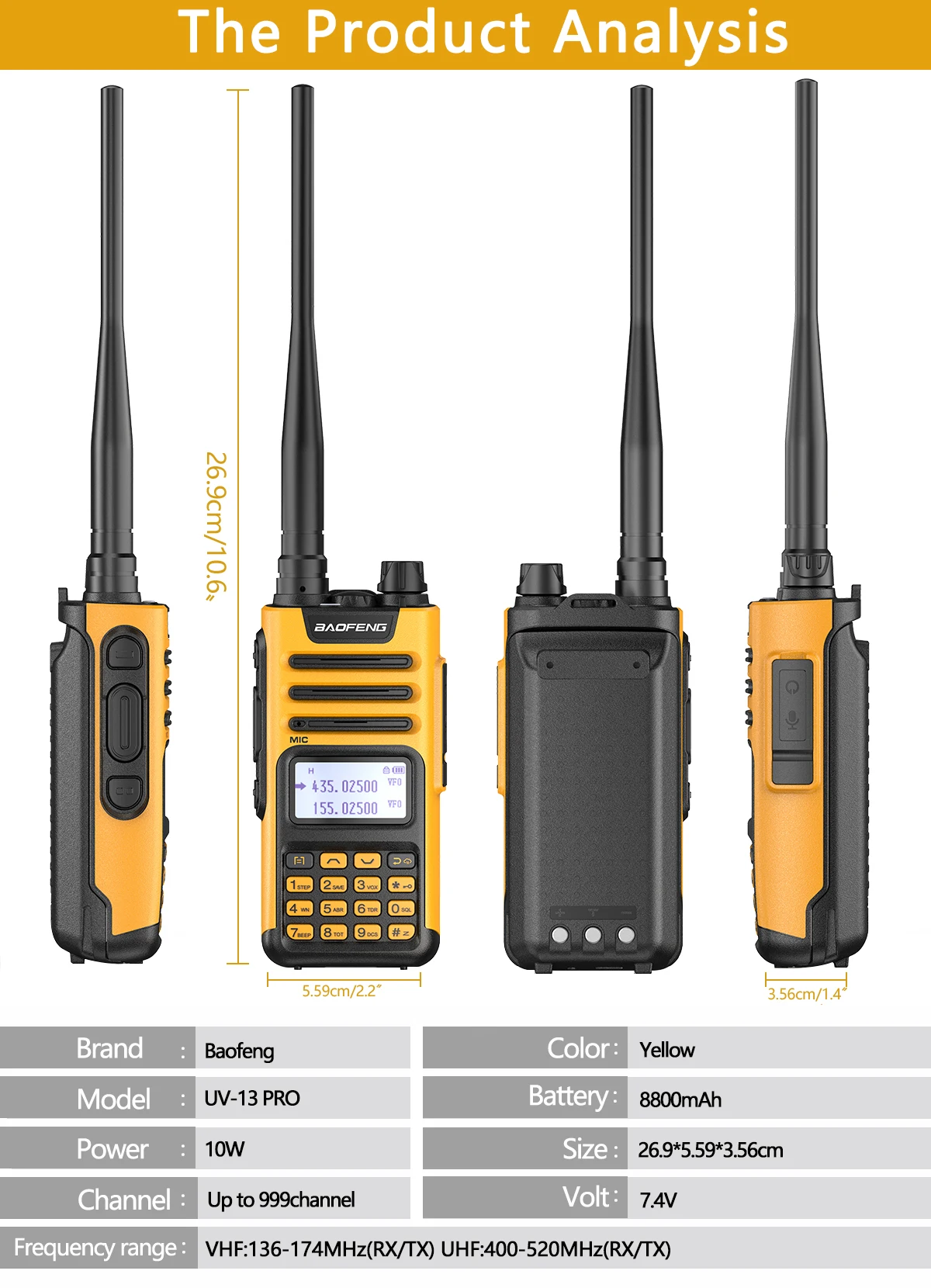 Baofeng UV-13 PRO Walkie Talkie 10 Вт Высокая мощность 999 каналов двухдиапазонный UHF VHF радио передатчик USB зарядное устройство UV-5R двухстороннее радио