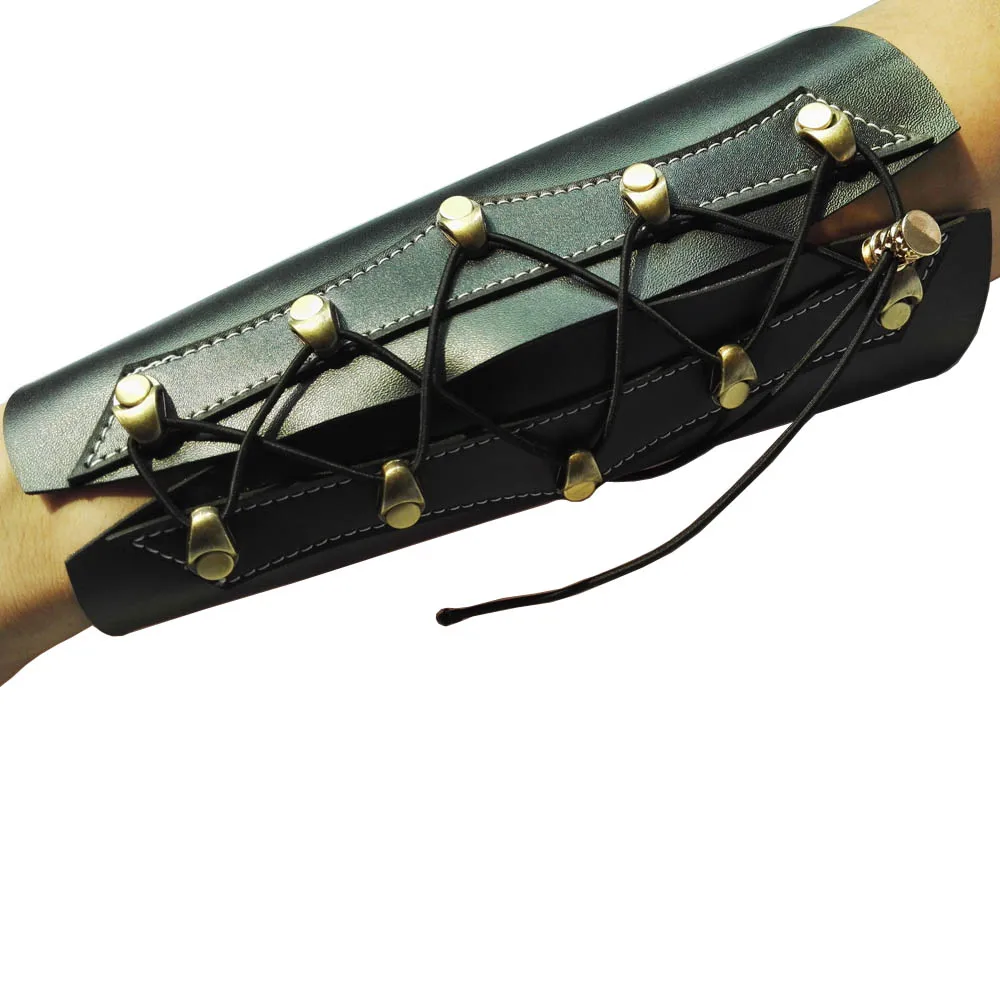 Кожаный нарукавник с традиционным бантом, прямой нарисованный бант, универсальный винтажный, Воловья кожа, защита при стрельбе из лука, нарукавник