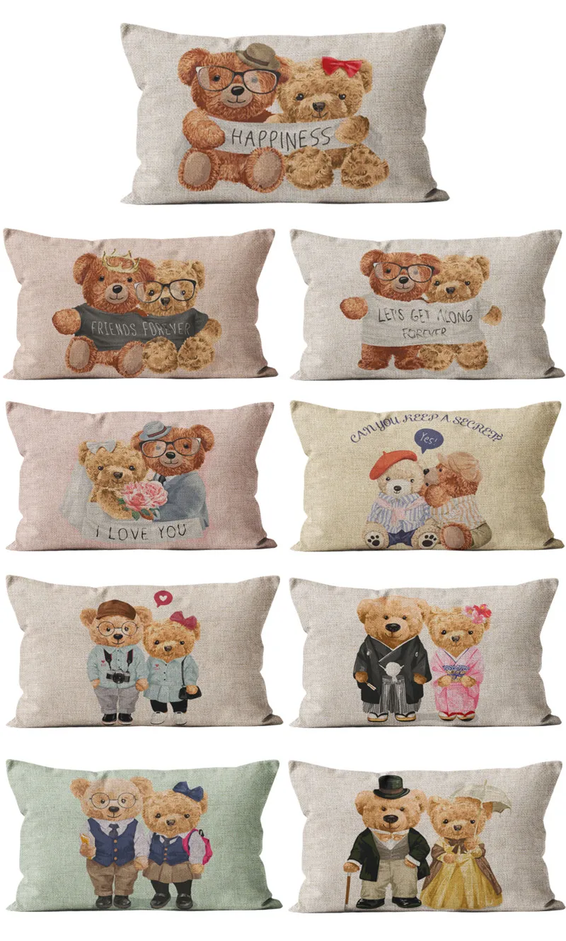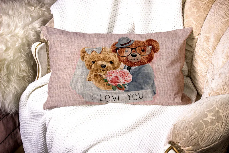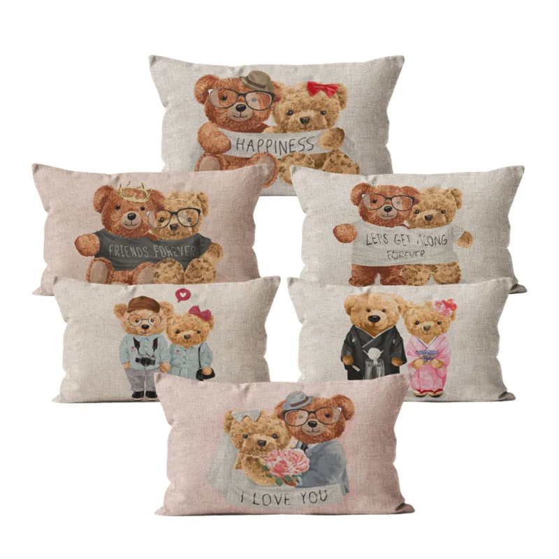 Новогодняя милая детская игрушка с милым медведем для пары, украшение для детской комнаты, прямоугольная наволочка для подушки, 40, 45, 50, чехол для подушки в подарок