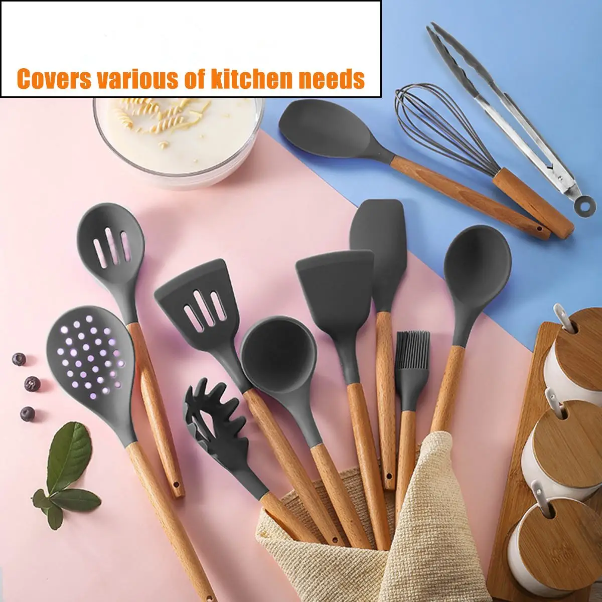 -12 шт набор силиконовых кухонных принадлежностей покрывает различные кухонные потребности для приготовления пищи.