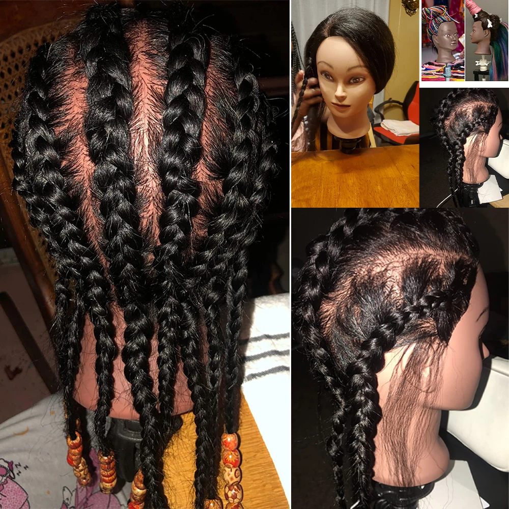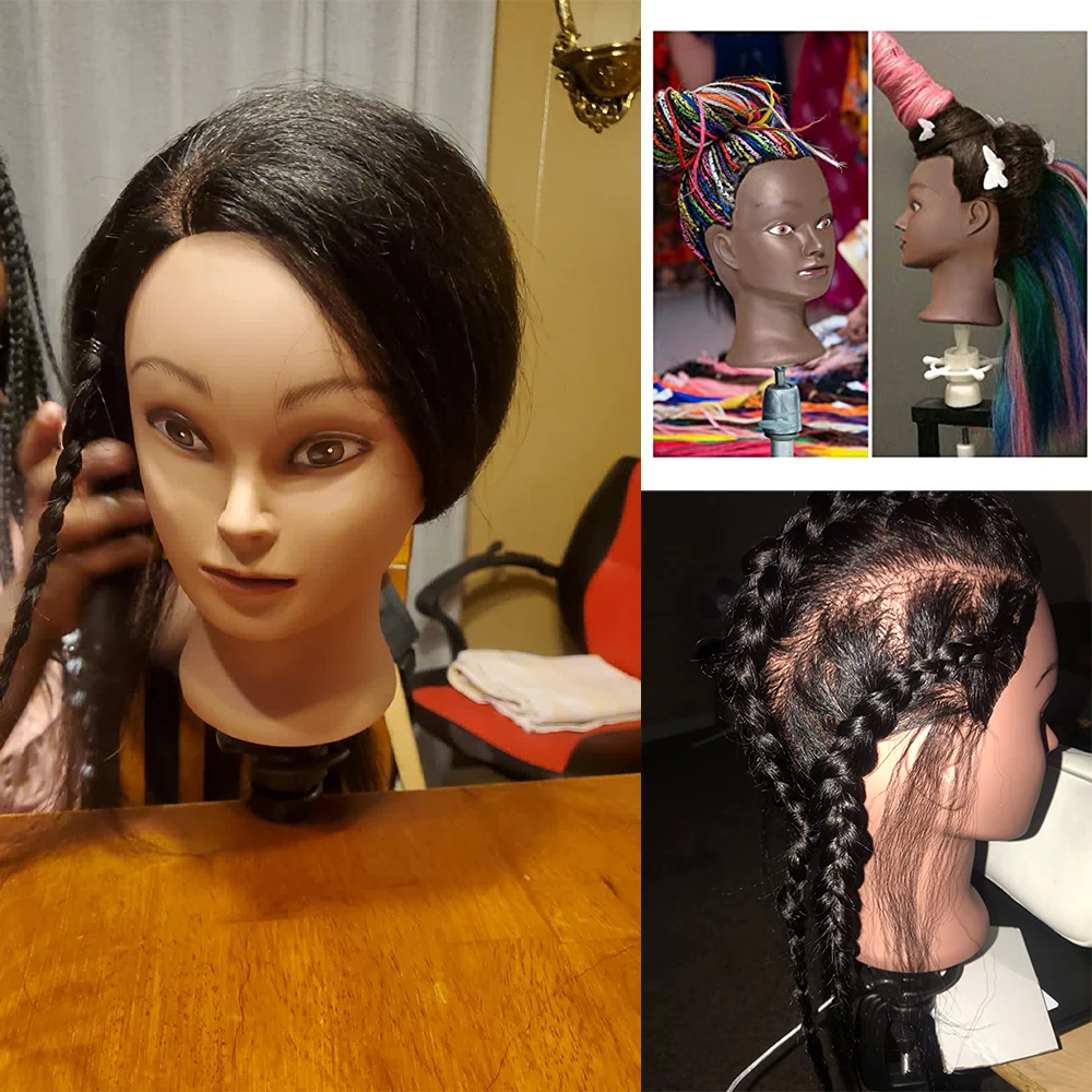Африканский манекен, тренировочная головка с натуральными человеческими волосами, манекен косметологии, макияж, кукольные головки и подставка для демонстрации практики плетения