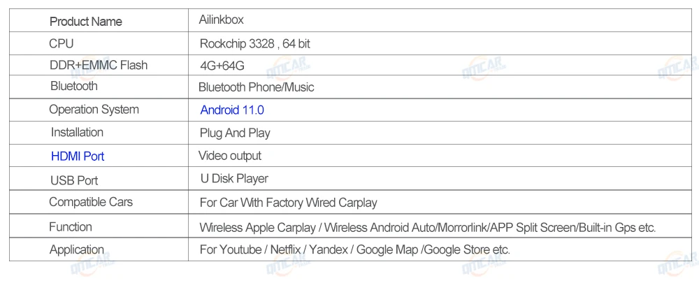 Поддержка беспроводной s Carplay/беспроводной Android Auto/Youtube/Netflix/Plug & Play/Встроенный Gps/Google Maps/Google Store/Watch TV ..