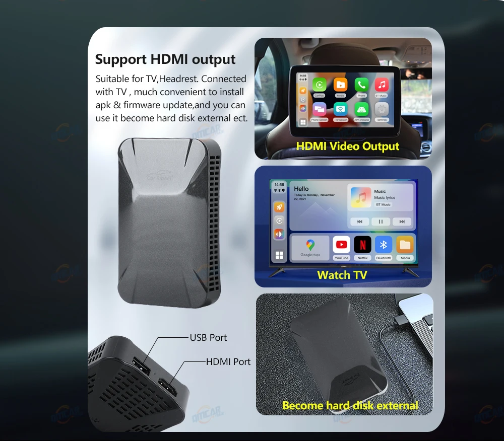 Поддержка вывода hmdi: вы можете наслаждаться тремя функциями одновременно, первый-подключение к экрану навигации заднего сиденья, второй эквивалентен TV-BOX. Вы можете взять его домой, чтобы играть по телевизору, третий эквивалентен компьютеру снаружи настроить жесткий диск