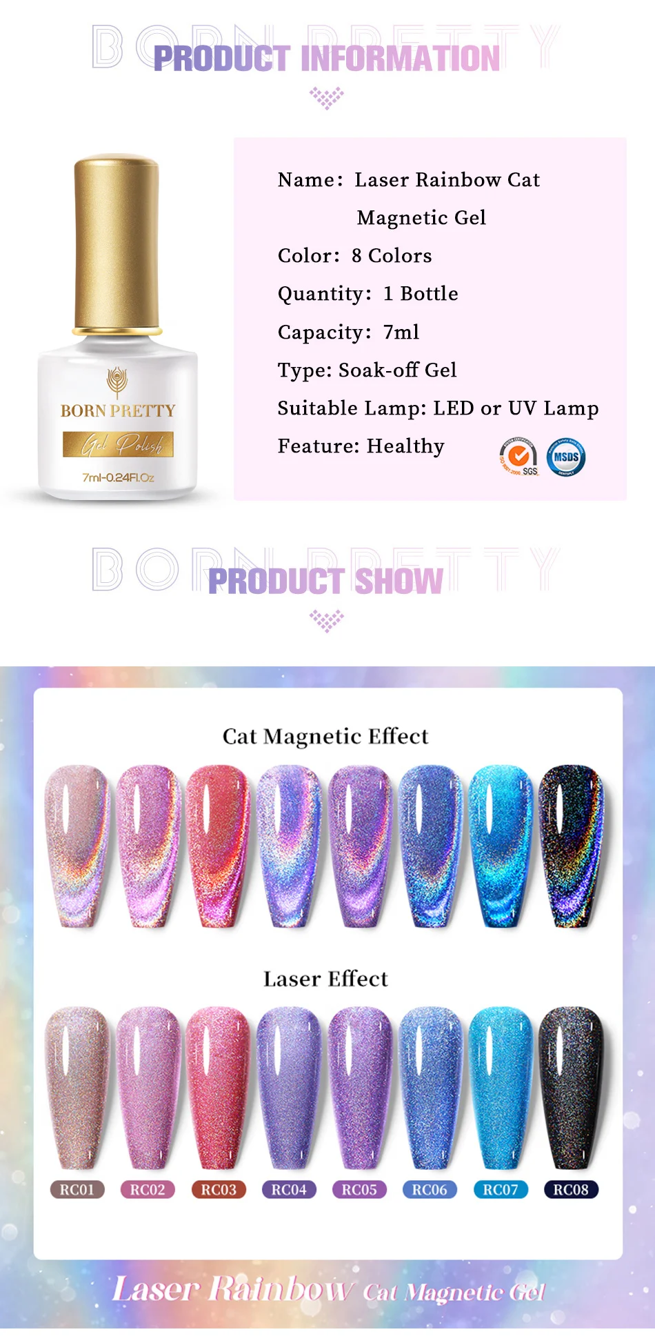 BORN PRETTY 1 бутылка 7 мл Радужный кот магнитный гель лак для ногтей
