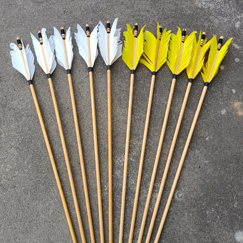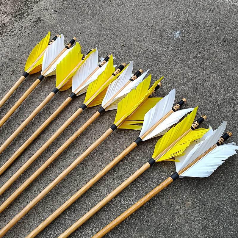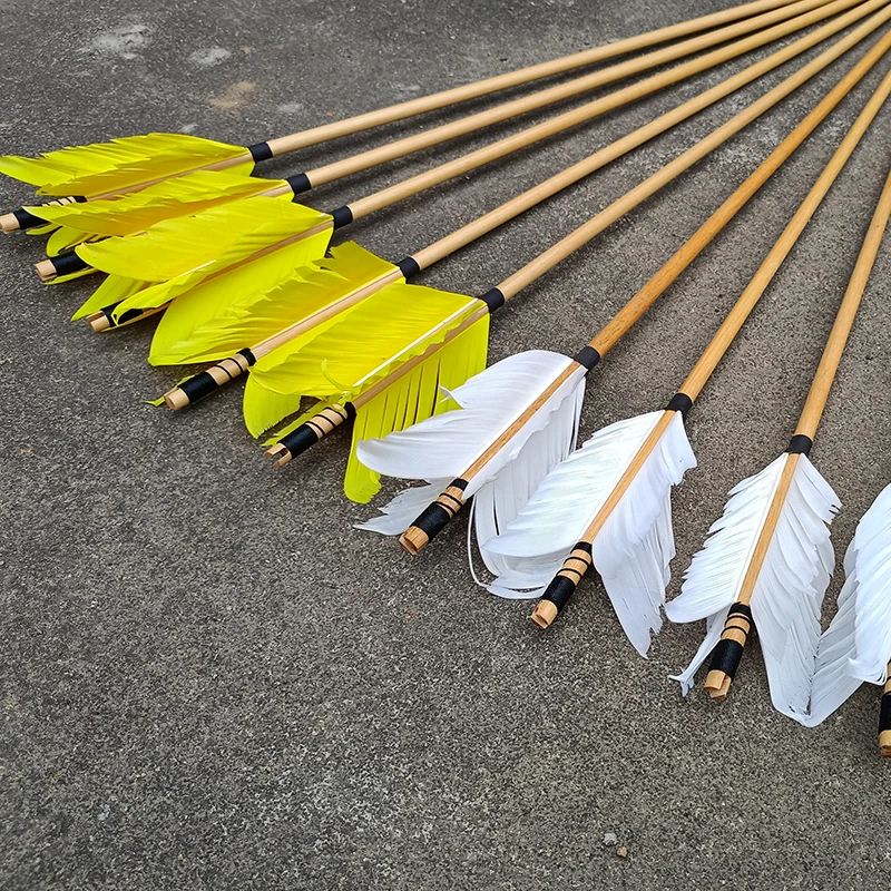 6/12/24 шт. Охота стрельба из лука гриппа стрелки с традиционными деревянными стрелка 4 из страусиных перьев для 25-50lbs изогнутый/блочный лук