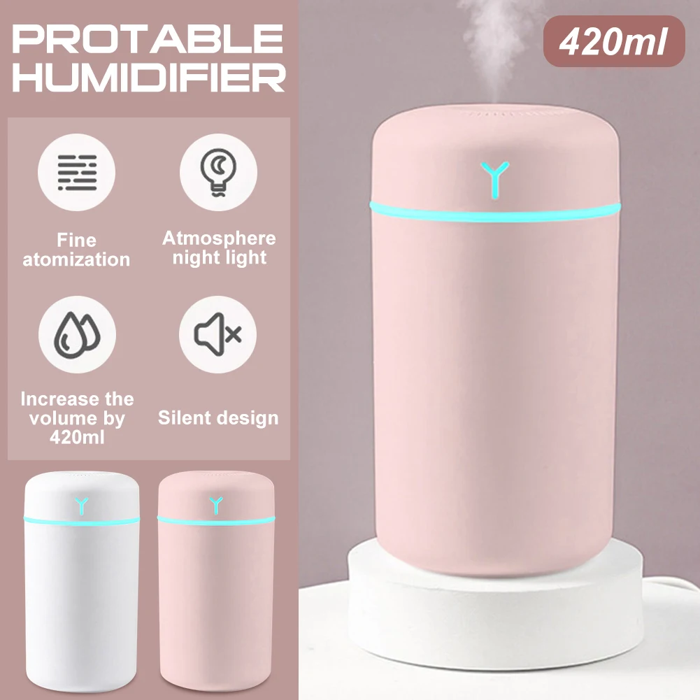 Портативный 420 мл увлажнитель воздуха Арома-масло увлажнитель воздуха для дома автомобиля USB холодный туман распылитель с красочным мягким ночным светильник очиститель