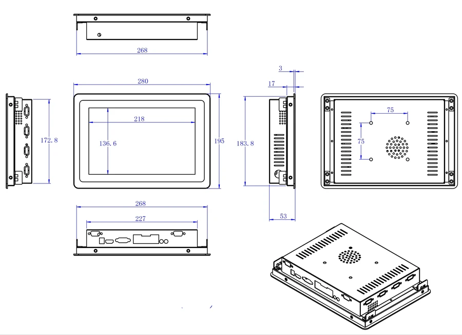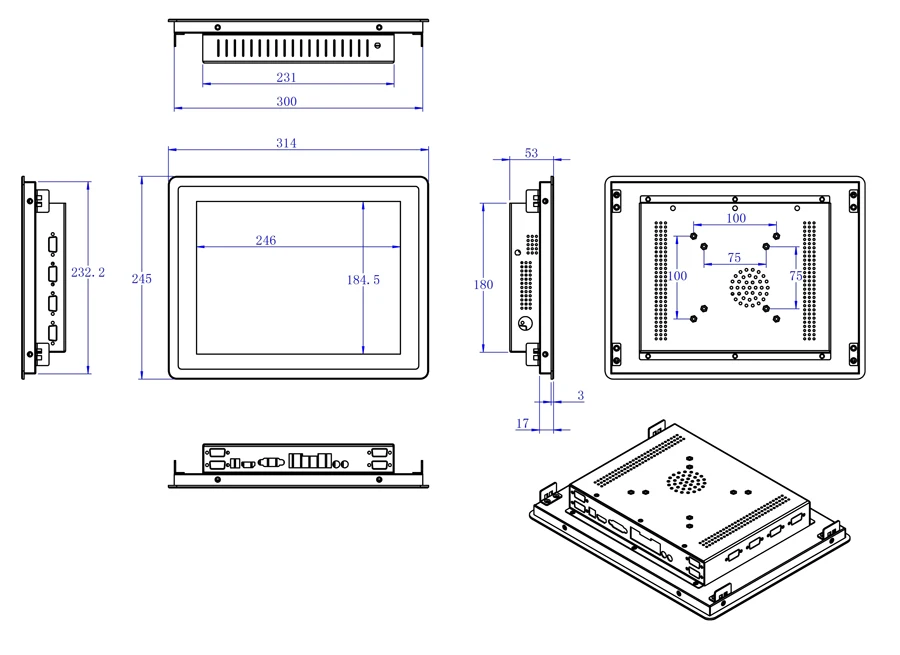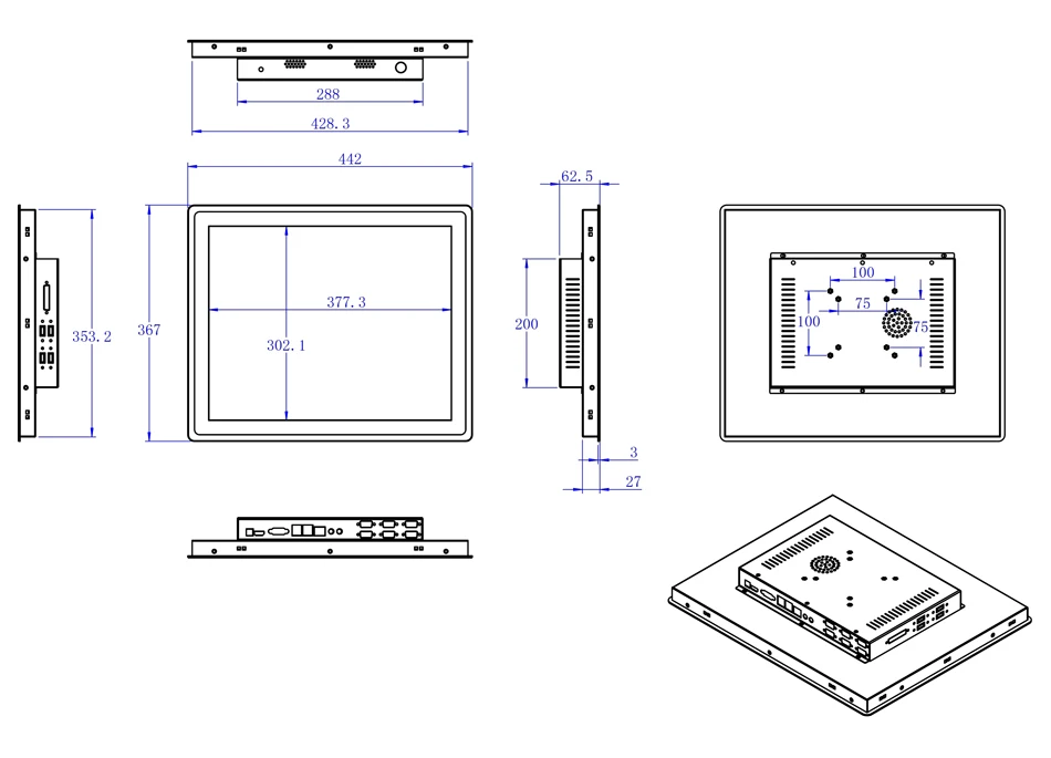 Параметры экрана:TFT LCD, соотношение сторон 4:3, Угол обзора: горизонтальный (левый/правый): 150 ° (75 °/ 75 °) Вертикальный (вверх и вниз): 150 ° (75 °/ 75 °), черная рамка