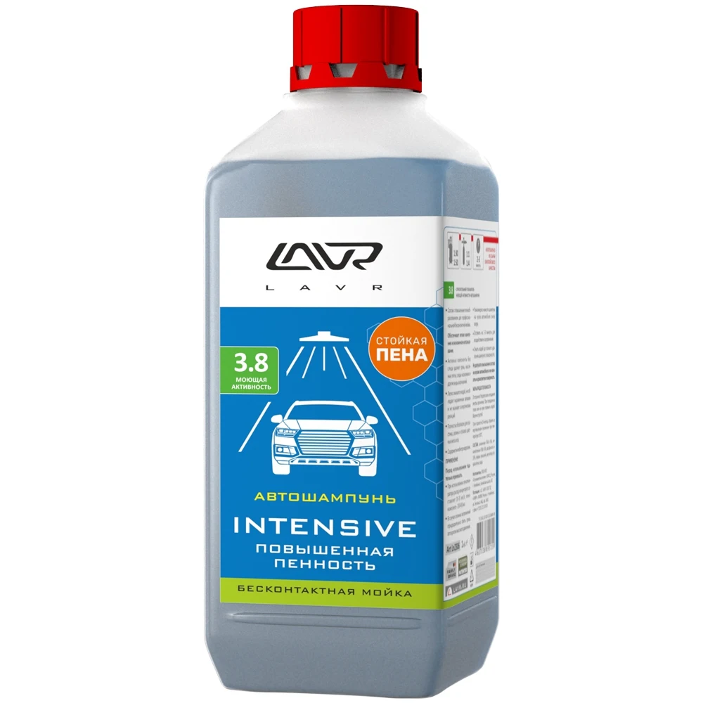 Описание автошампуня INTENSIVE Нужен экономичный автошампунь? LAVR представляет автошампунь для бесконтактной мойки INTENSIVE с повышенным пенообразованием для применения в аппаратах высокого давления. Просто попробуйте. На что воздействует Профессиональный состав INTENSIVE - это легкое нанесение, экономичное использование и, конечно, прекрасный результат. Автошампунь LAVR без следа удаляет грязь, масляные пятна, следы насекомых и другие виды загрязнений легко смывается водой обладает нейтральным запахом безопасен для аллергиков бережно относится к пластику, резине и сплавам цветных металлов. защищает лакокрасочное покрытие от коррозии. Автошампунь для бесконтактной мойки INTENSIVE от LAVR эффективен в борьбе с легкими и средними загрязнениями и абсолютно безопасен. Как использовать При использовании пеногенератора расход концентрата составляет 20-35 г/л, пенокомплекта - 250-450 мл. В случае сложных загрязнений предварительно сбить грязь аппаратом высокого давления. Равномерно нанести шампунь на кузов автомобиля снизу вверх. Оставить на 2-3 минуты для воздействия на загрязнения. Смыть водой до полного удаления шампуня с поверхности НЕ ДОПУСКАТЬ ВЫСЫХАНИЯ СОСТАВА НА КУЗОВЕ АВТОМОБИЛЯ И НЕ НАНОСИТЬ НА РАЗОГРЕТУЮ ПОВЕРХНОСТЬ Состав Анионные ПАВ 5-15%, неионогенные ПАВ < 5%, эфиры гликолей < 5%, хелатирующие добавки 5-15%, регулятор рН 5-15%, краситель < 1%, вода.