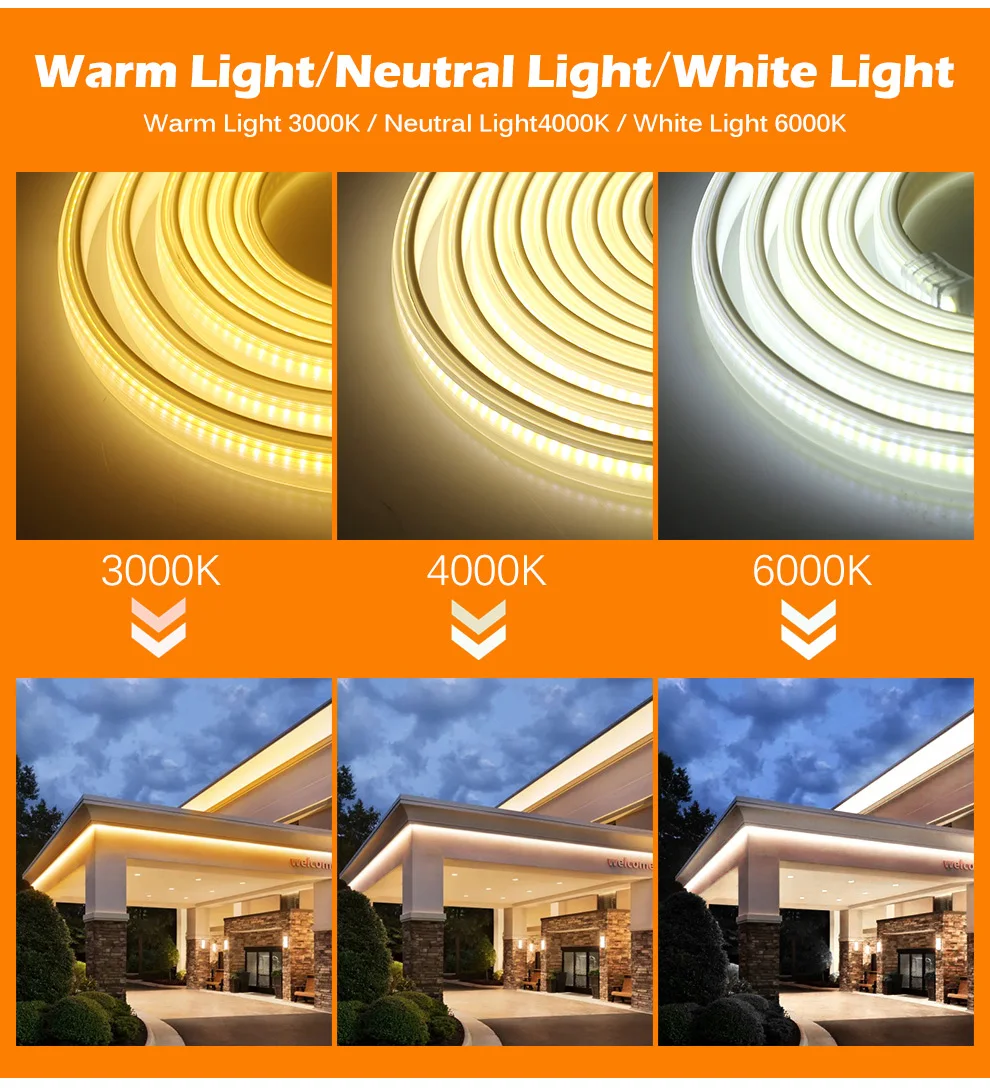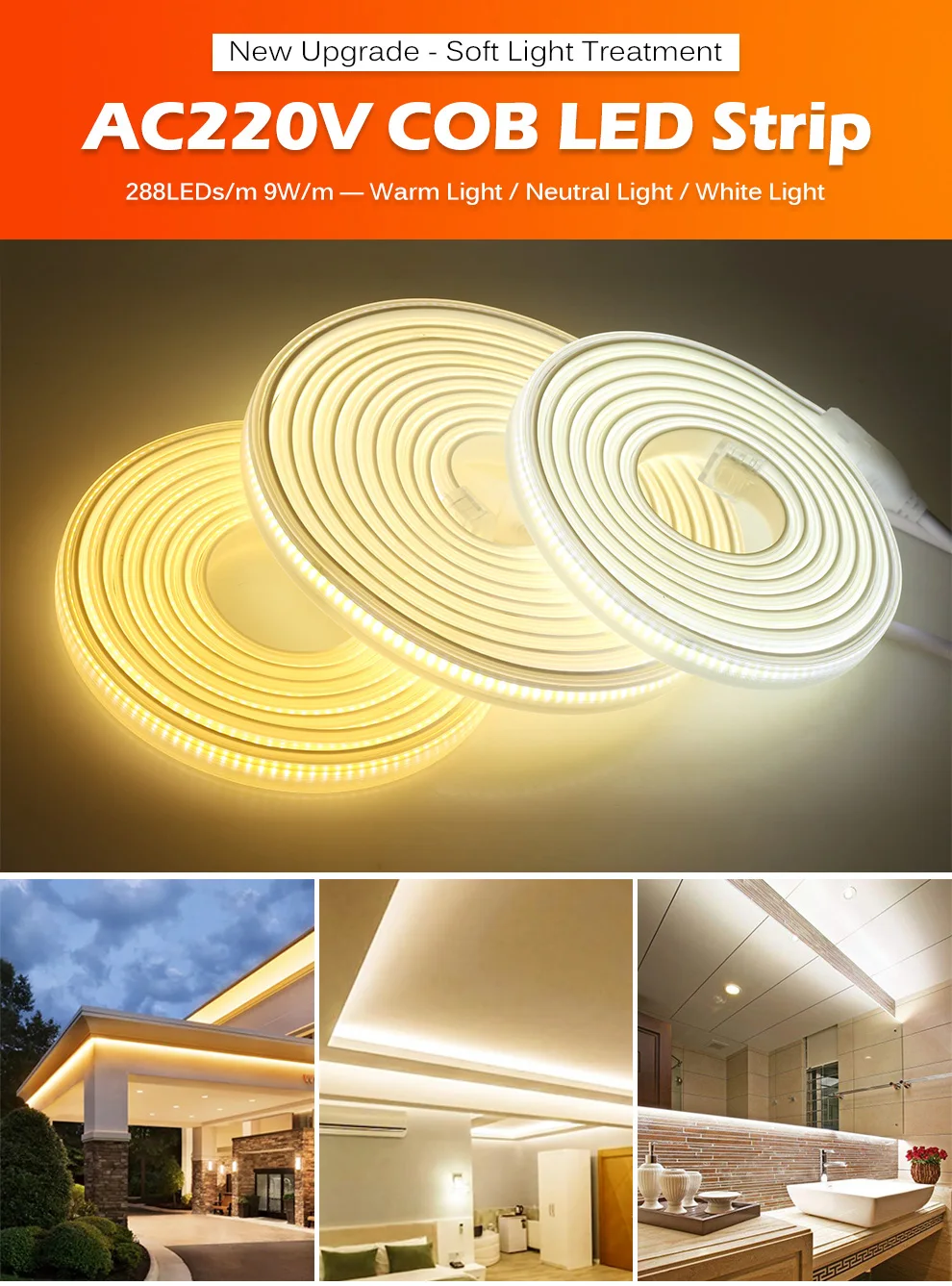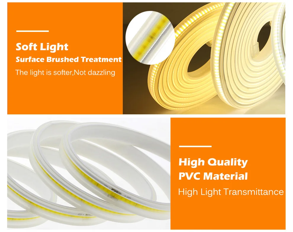 AC220V COB Светодиодная лента высокой плотности гибкий IP67 Водонепроницаемый 288 светодиодов/м 9 Вт/м высокая яркость 3000K 4000K 6000K