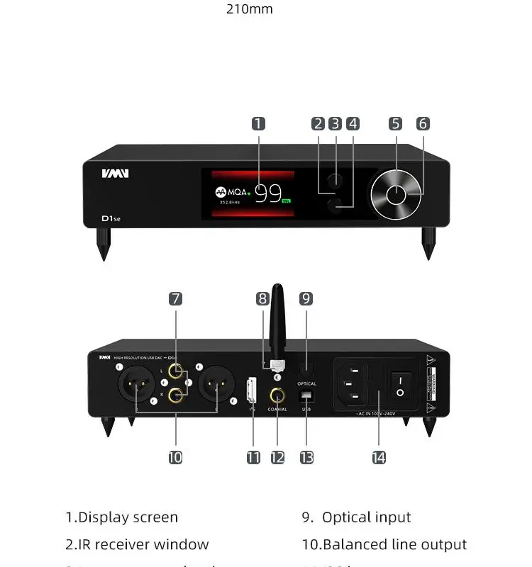 SMSL VMV D1se высококачественный MQA аудио DAC 768kHz 32bit XMOS Bluetooth5.0 USB оптический коаксиальный RCA DSD512 ES9038PRO с пультом дистанционного управления