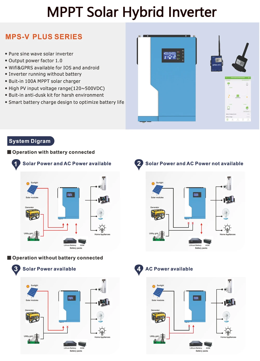 Wifi Порт Разъем и RS-232 последовательный порт RJ45 Crys имя приложения SmartESS для 3500 Вт 5500 Вт MPPT солнечный гибридный инвертор