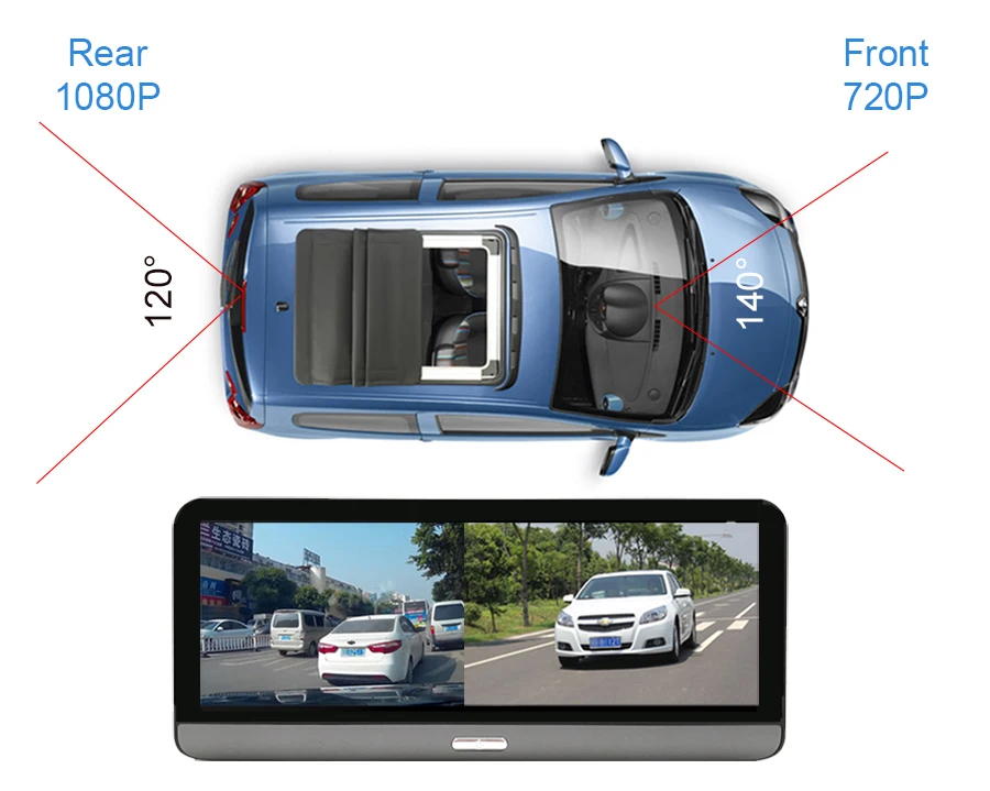 Это устройство поставляется с двумя широкоугольными камерами и может для передней и задней части вашего vehide.Фронтальная 1208*720P, задняя 1920*1080P; Две HD камеры могут записывать одновременно автоматически захватывая каждый мимолетный момент.