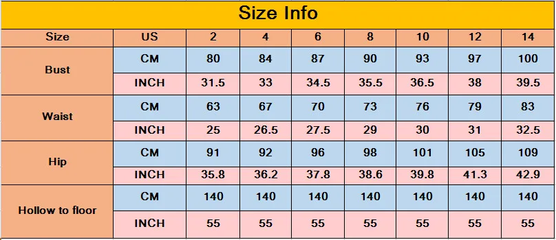 Эти платья изготавливаются на заказ, если Вы не нашли правильный размер, пожалуйста, выберите размер 14, чтобы разместить заказ, и оставьте нам сообщение о вашем обхвате груди, талии, бедер, носок (естественная высота), плечо, высота обуви, пройма, тогда мы подготовим для вас.